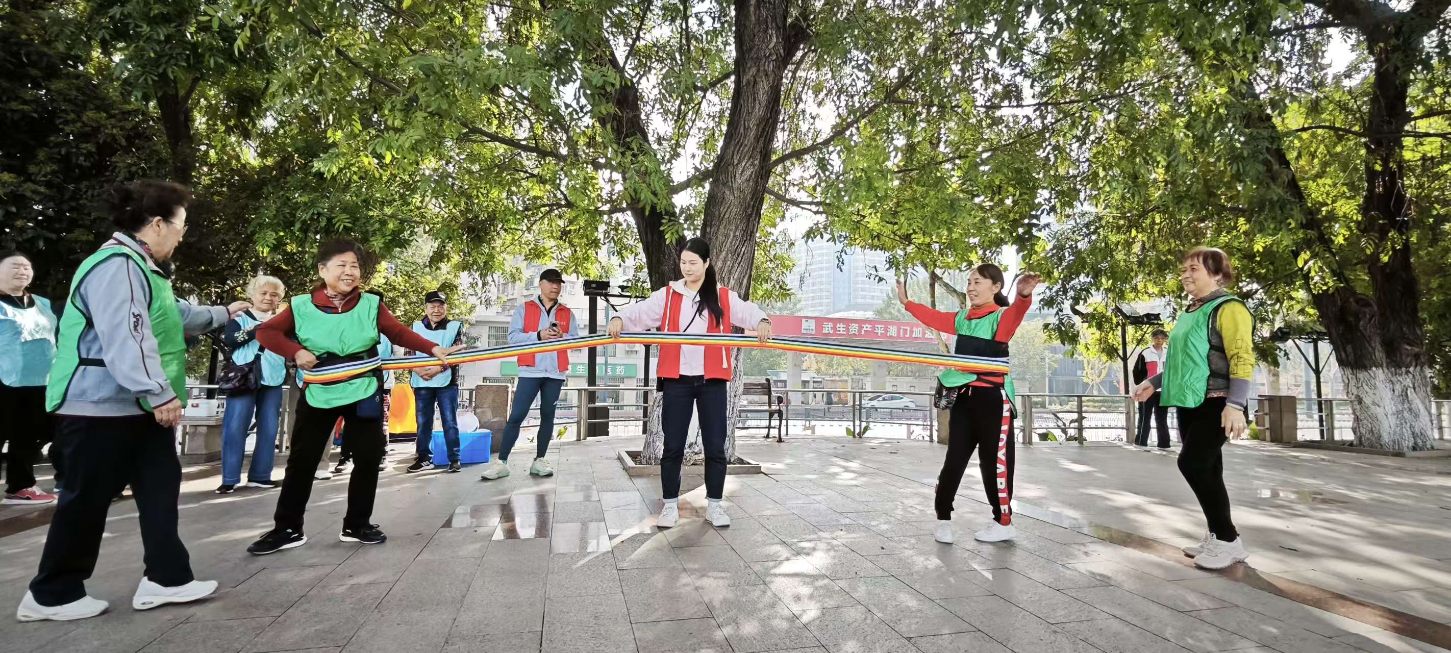 压轴的“灵蛇舞动”项目中,两队代表戴道具持彩带,在队友保护与音乐伴奏下起舞,将彩带缠腰摆出蛇形等造型。彩绸翻飞,观众纷纷拍照,现场始终洋溢着欢乐和谐的氛围,居民在参与中收获快乐与友谊。
