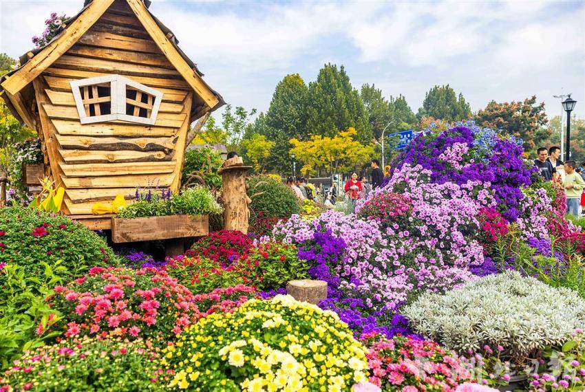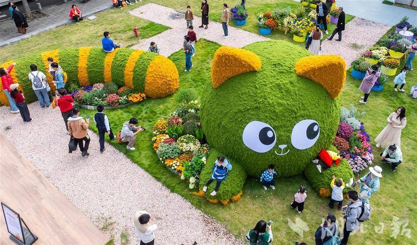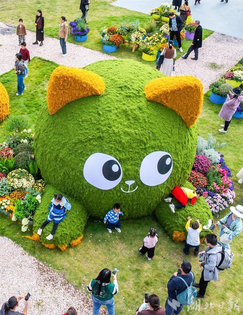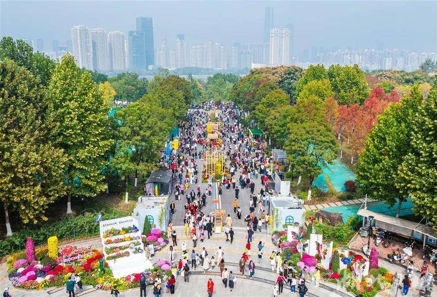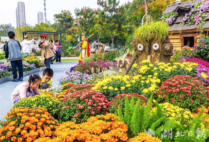 11月1日,武汉金秋菊展沙湖公园展区花团锦簇,众多游客前来观赏打卡。
