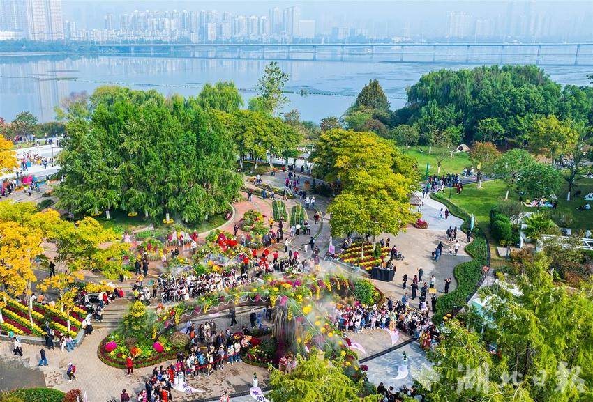 11月1日,武汉金秋菊展沙湖公园展区花团锦簇,众多游客前来观赏打卡,宛如一幅绚丽多彩的秋日画卷。