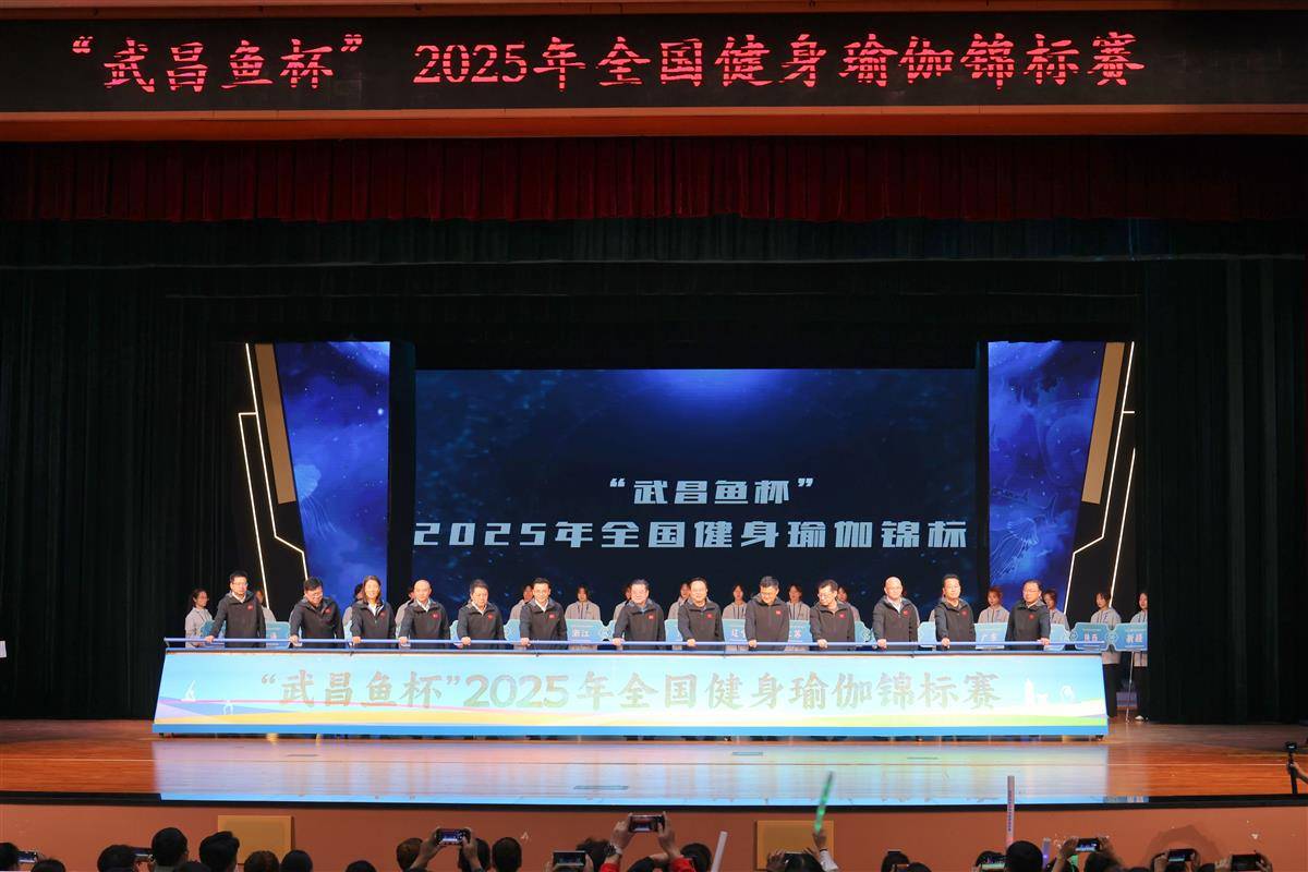 在倒计时声中,领导嘉宾共同推动启动杆——“武昌鱼杯”2025年全国健身瑜伽锦标赛字样闪耀绽放,标志着这场全国性健身瑜伽赛事正式启航。