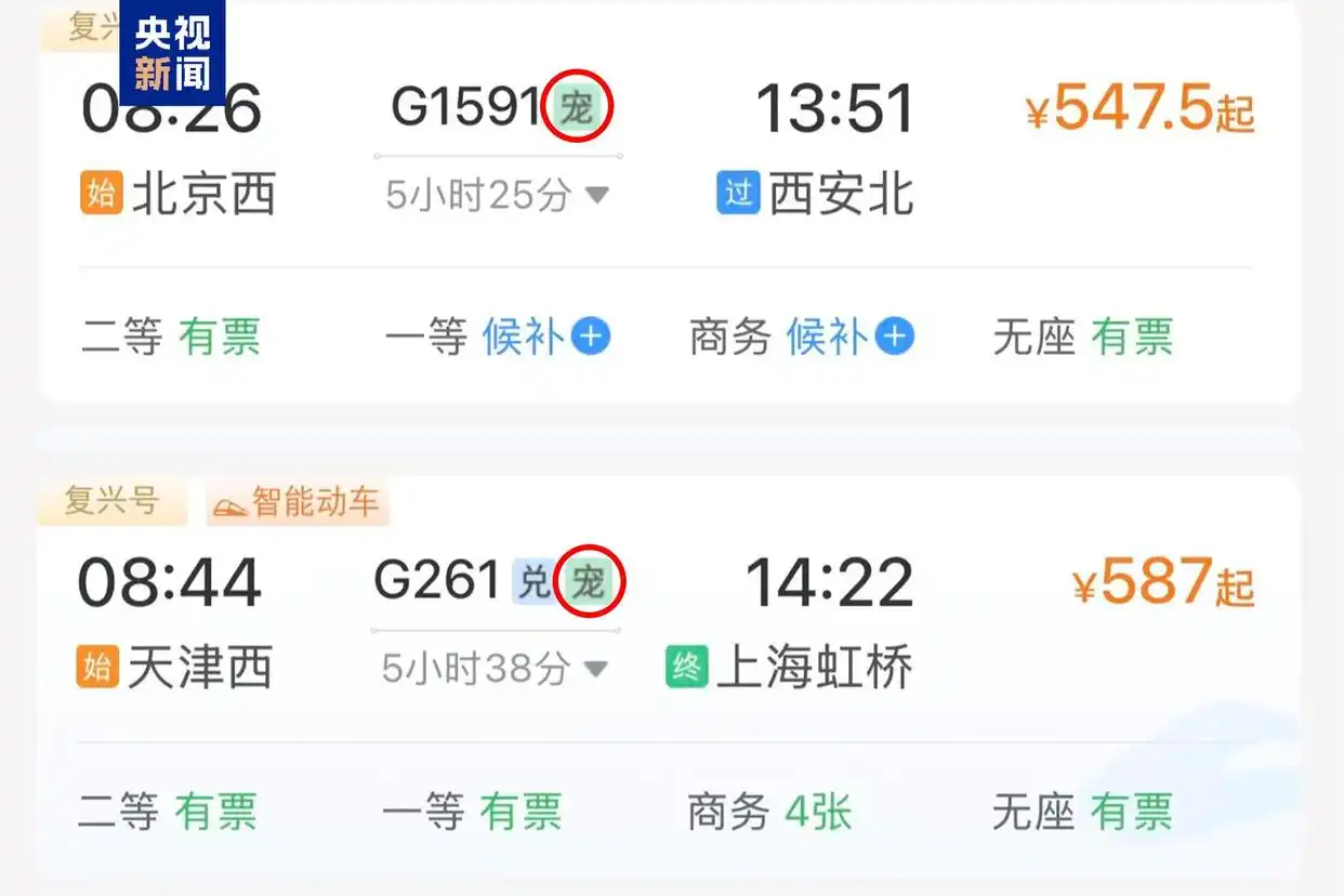 近日,铁路12306官方购票页面又有更新,部分车次信息旁多了个绿色“宠”字,意味着这趟列车可以托运宠物。不仅更便捷,还服务升级,宠物可无人陪护单独托运。