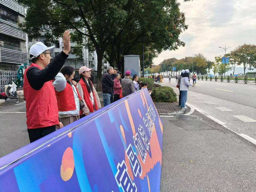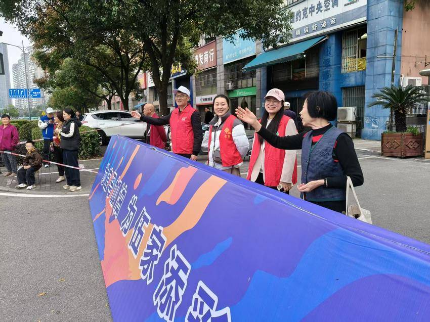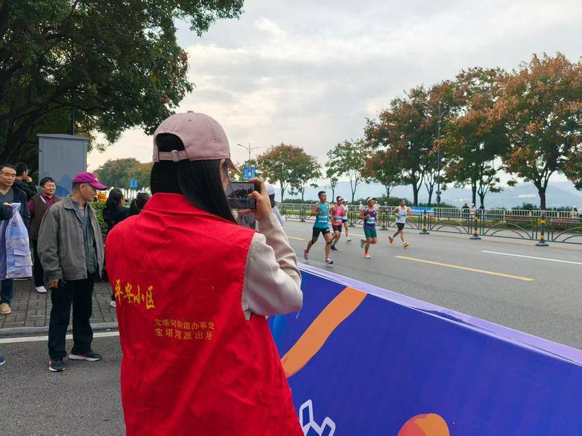8时许,当参赛人员陆续跑进宝联社区辖区路段,赛道旁瞬间热闹起来。社区工作人员与兄弟单位志愿者们立刻起身,挥舞着手中的小旗帜,齐声喊出“加油!坚持住!”的助威口号。有跑者听到呐喊后加快了步伐,还有人笑着挥手回应,红色的志愿服与运动服交织在一起,成了赛道上最有活力的风景线。