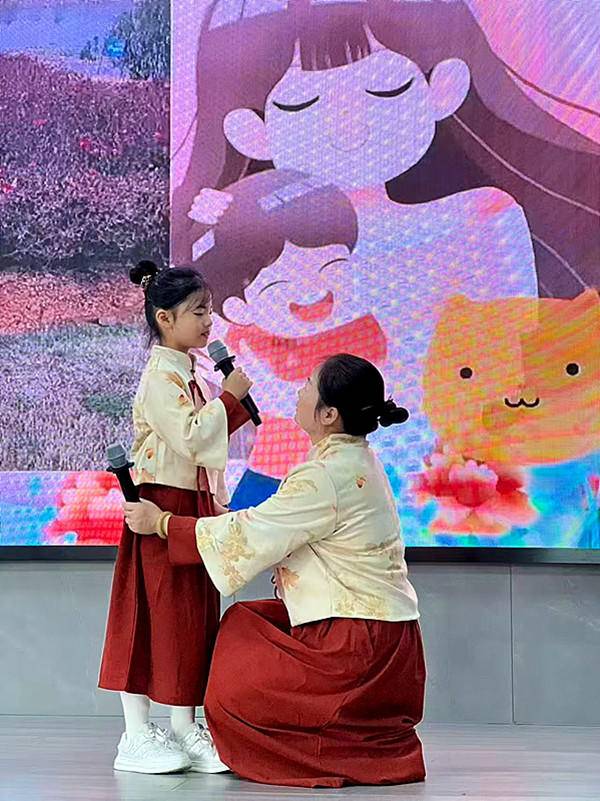 读书分享会现场,三组教师家庭带来的亲子朗诵成为亮点。从《爱与梦想》的温暖憧憬,到《做一个最好的你》的坚定信念,再到《妈妈您知道吗》的真情流露,亲子共读不仅营造了温馨氛围,也展现了家校协同育人的积极成效。《诵红色经典 承长征精神》朗诵节目以激昂的语调,带领观众重温革命岁月的艰辛与荣光,传递出长征精神在新时代的赓续与弘扬。舞蹈《长歌行》则以优美舞姿诠释“少壮不努力,老大徒伤悲”的深刻内涵,引导师生珍惜光阴、积极进取。