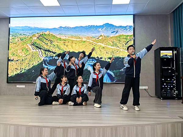 分享会在热烈的氛围中拉开帷幕。该校副校长丁燕首先作题为《寻觅后勤工作的大用之道——读〈渔樵问对〉有感》的分享。她结合教育实践,从独特视角阐释经典著作的现实意义,引导师生感悟传统智慧,汲取育人灵感,引发广泛共鸣。随后,一年级学生带来的《唐诗新唱》节目,以舞蹈与朗诵交融的形式,生动演绎了古典诗词的韵律之美。童真童趣的表演不仅赢得阵阵掌声,更彰显出中华优秀传统文化的当代活力。六年级学生演绎的英文歌曲《A Little Love》,则以流畅的演唱展现语言能力与艺术素养,传递出阅读跨越语言、沟通心灵的文化魅力。