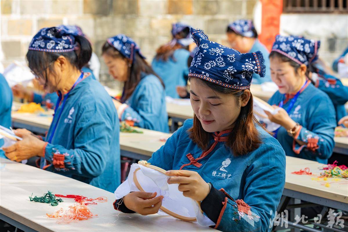 11月2日,秭归县在屈原故里文化旅游区芈绣馆举办“三闾刺绣”技能竞赛。现场,60余名绣娘飞针走线,灵活运用挑花、掇花等传统针法同台竞技。起源于屈原故里的“三闾刺绣”是宜昌市级非物质文化遗产。近年来,当地通过“公司+绣娘”模式,发展订单生产,开发文创产品,推动传统技艺与现代市场融合。截至目前,已累计培训绣娘5800多名,带动千名群众增收超300万元,成功将“指尖技艺”转化为促进乡村振兴的“指尖经济”。(视界网 彭强 摄)