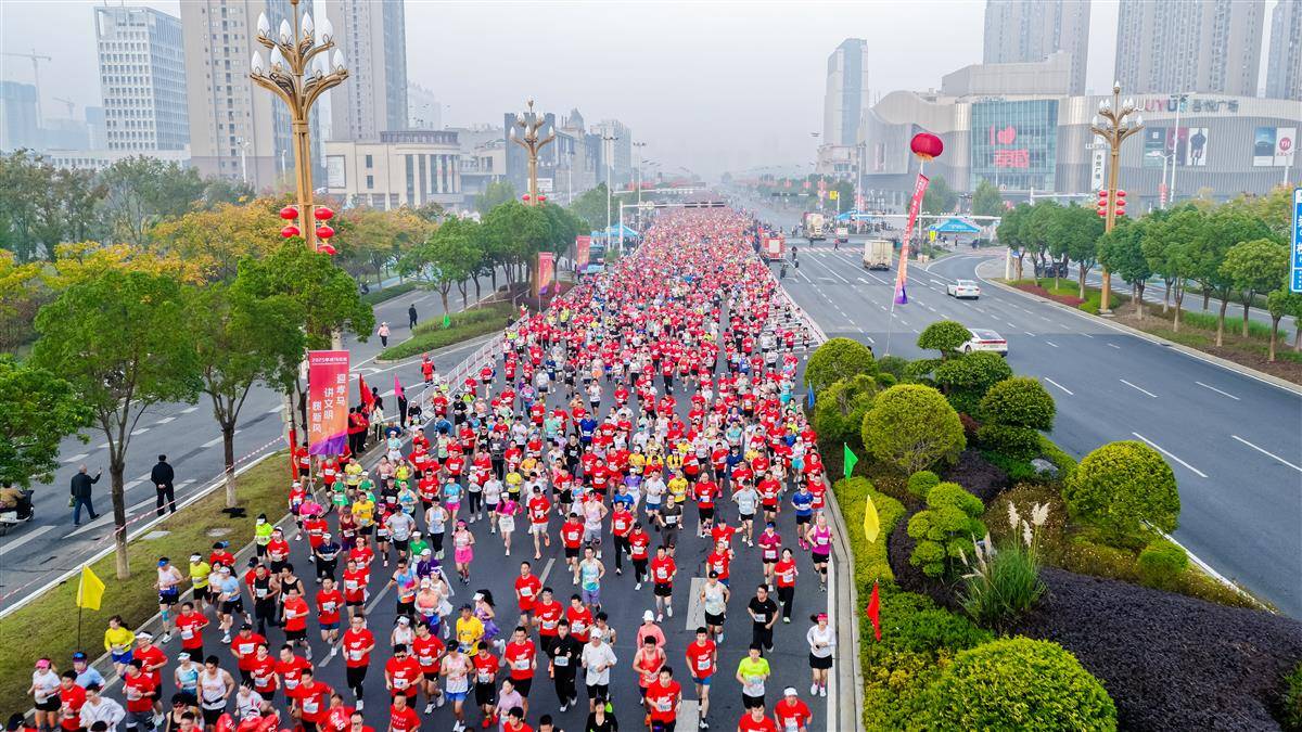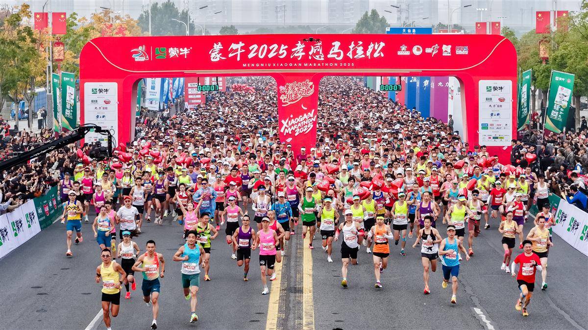 蒙牛2025孝感马拉松鸣枪开跑,1.2万名选手用脚步丈量“孝爱之城 甜蜜之地”。(孝感马拉松组委会供图)