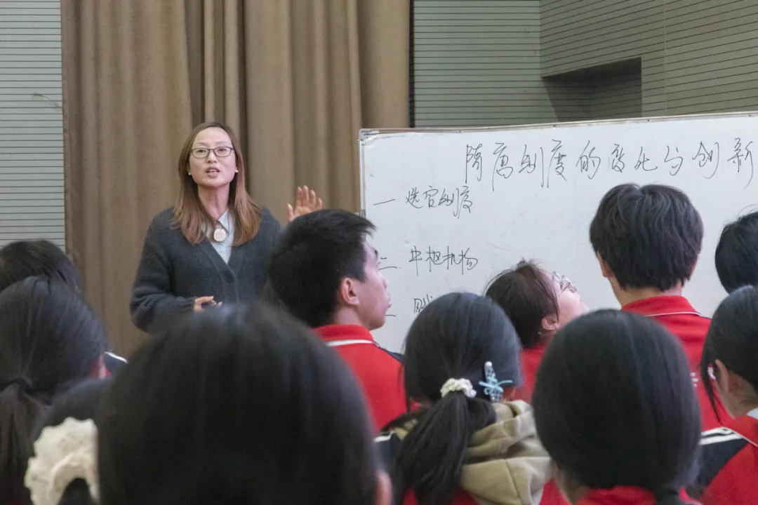 活动现场,黄陂二中教师陈欢与汉口北高中教师詹桂芬围绕“隋唐制度的变化与创新”主题,分别呈现了特色鲜明的示范课,充分展现了概念教学在历史课堂中的实践价值。其中,课上提出的融入人工智能技术,通过数字化工具将抽象概念具象化的理念,与华师盘龙城校区重点发展人工智能学科、搭建“智慧课堂”的系统规划形成了实践呼应。