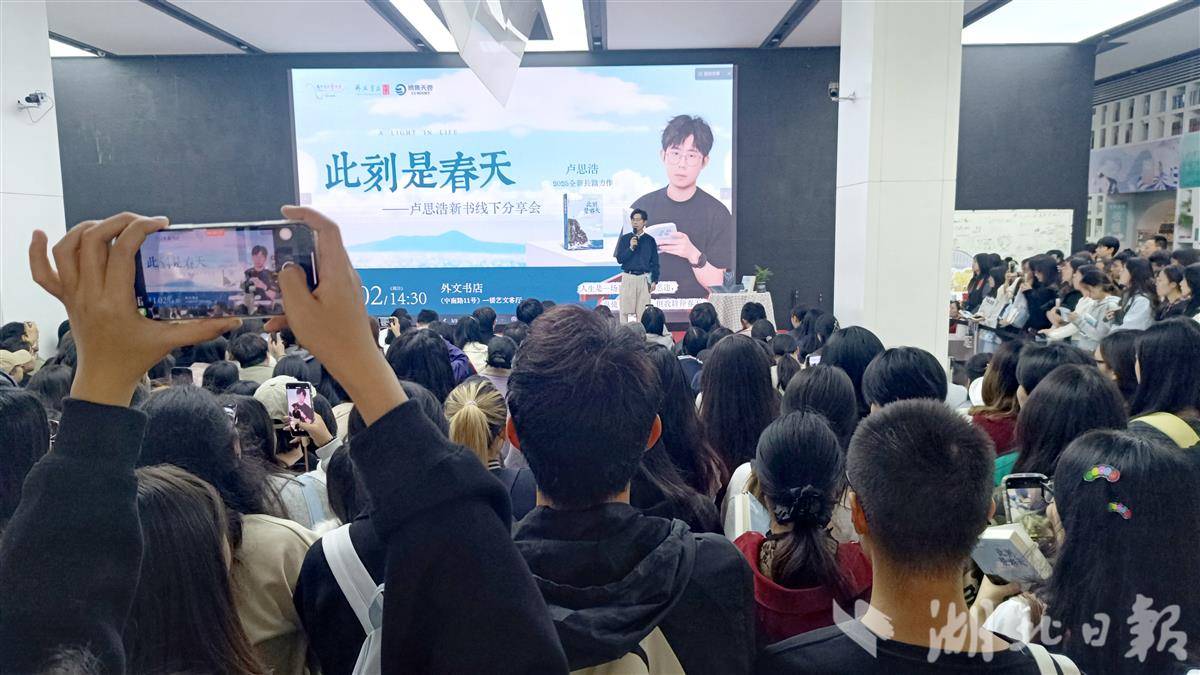 湖北日报讯(记者韩晓玲、通讯员李诗苑)“决定走过的旅途是否有意义的人,是我们自己。”11月2日,青年作家卢思浩携新书《此刻是春天》走进湖北省外文书店,与读者分享“此刻的意义”。数百名读者早早前来等候,现场人气爆棚。
