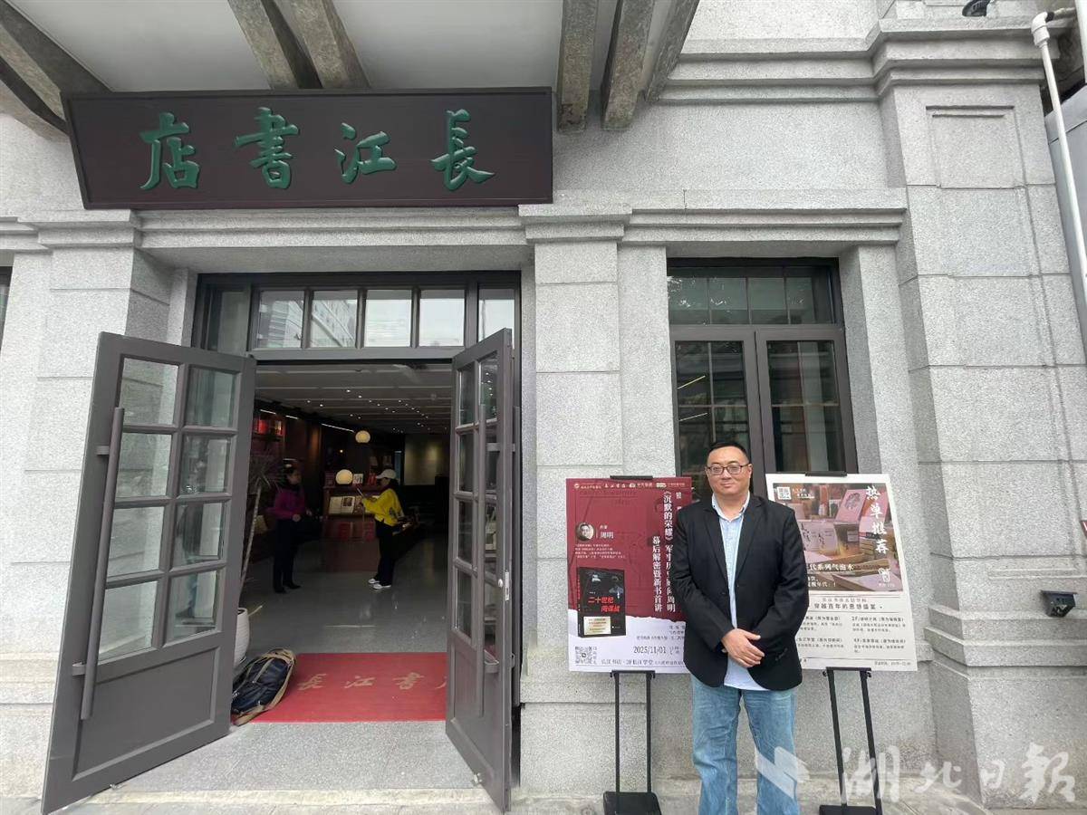 周明在历史悠久的长江书店前留影