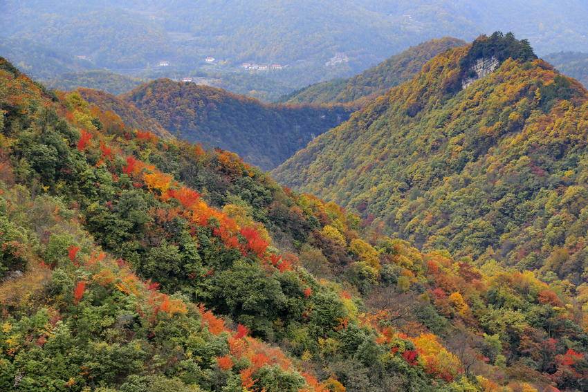 湖北日报客户端讯(通讯员袁选国)秋光漫过兴山脊梁,榛子乡浸在浓醇诗意里。远山如黛叠翠,近林流丹飞霞,林木褪去葱茏,晕染出橙红、金黄、深褐的层次,恰似大自然打翻调色盘,天地间铺就流动油画。