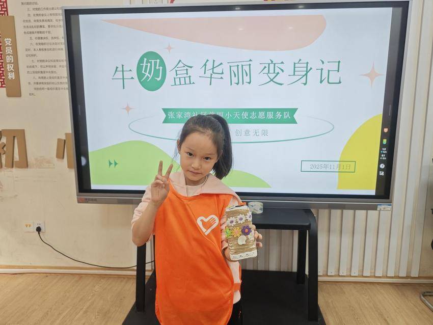 湖北日报客户端讯(通讯员 秦晴)11月1日上午,张家湾社区新时代文明实践站内充满了孩子们的欢声笑语和天马行空的创意。一场以“牛奶盒华丽变身记”为主题的环保手工制作活动在这里精彩上演,张家湾社区“美丽小天使”志愿服务队将日常生活中平平无奇的牛奶盒,改造成了一件件独具匠心的艺术品和实用小物,亲身实践了“变废为宝”的绿色理念。