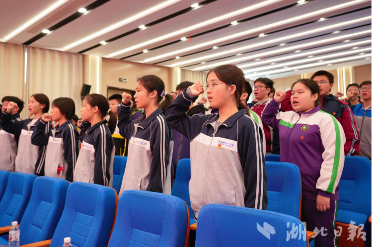 湖北日报客户端讯(通讯员陈雄、朱利明)10月29日,仙桃市2025年秋季学期离队入团暨“挺膺担当 青春建功支点”主题团日活动在仙桃一中举行。活动以青春建功支点建设为契机,引导青少年明晰新时代使命、锚定奋斗方向,进一步增强团员组织归属感与责任使命感,激励青年学子以实干姿态投身学习实践。