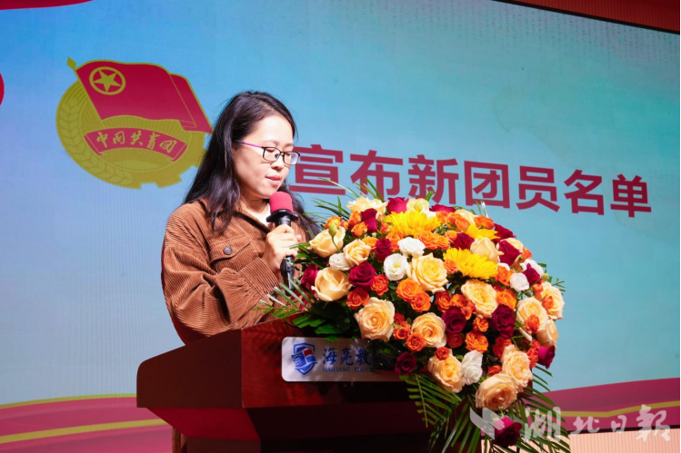 他强调新时代的仙桃青年,生逢盛世,肩负重任,大家的加入,为共青团注入了新鲜血液,也为家乡的发展增添了新的活力。希望全体共青团员一是做信念如磐的践行者,让青春在向党看齐中坚定方向,牢记青春誓言、坚守政治信念,厚植家国情怀、心系家乡发展大局,学习党的历史、传承红色基因;二是做勤学善思的追光者,让青春在求知探索中茁壮成长,树立远大理想、保持昂扬斗志,刻苦钻研知识、锤炼过硬本领,注重学用结合、积累实践经验;三是做担当有为的实干者,让青春在奉献社会中彰显价值,争当先锋榜样、树立团员标杆,勇担社会责任、传递青春正能量,坚持脚踏实地、锤炼实干作风。