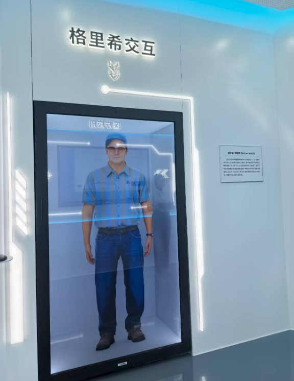 数字屏幕上,曾任武汉柴油机厂厂长的德国人格里希以“数字人”的形式“现身”,与参观者展开一场跨越时空的对话。