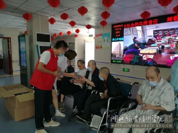 (熊文文在孝感市社会福利与康复中心捐献生活物资,并与老人们共度中秋节)