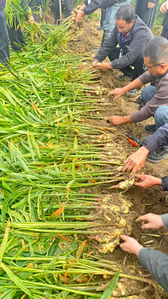 这场采收节的背后,是科技赋能传统农业的生动实践,也是小产业带动乡村振兴的有力见证。湖北省凡生农业发展有限公司总经理孙涛表示,明年将扩大种植规模、完善产业标准,先建成2000亩示范种植基地,未来计划带动20万亩种植面积,推动江汉平原生姜产业提质升级,立志打造华中地区第一生姜品牌和全国小龙虾专用生姜品牌。