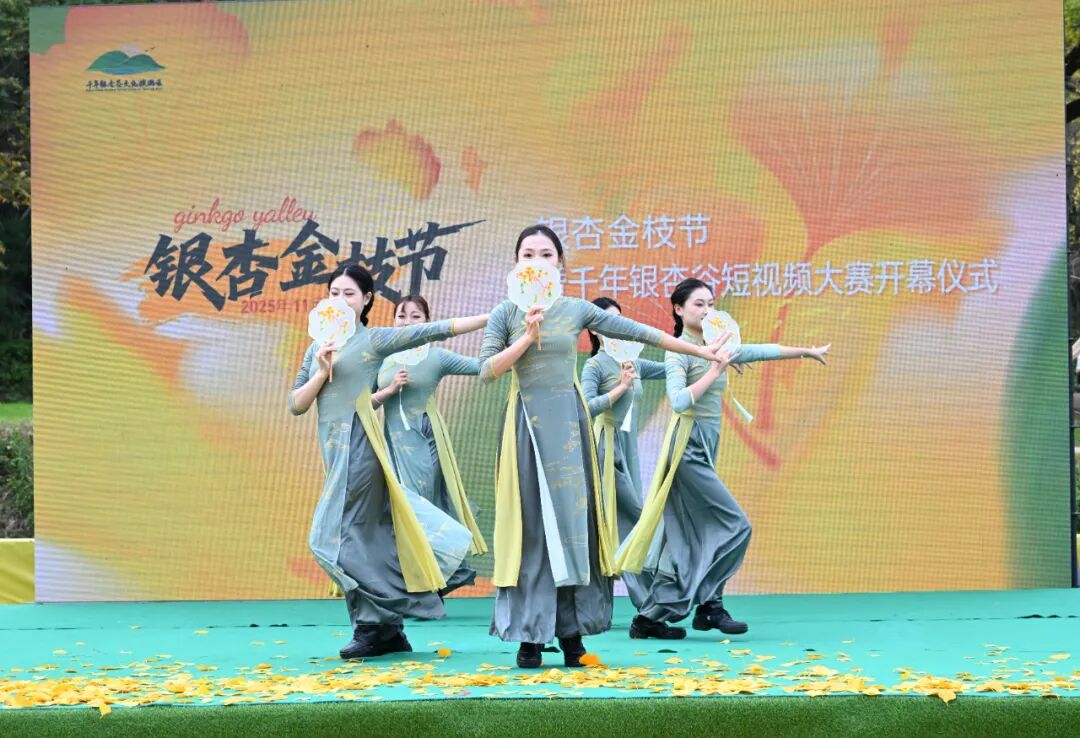 层林尽染,满谷鎏金。11月1日,千年银杏谷文化旅游区银杏金枝节暨短视频大赛系列活动启幕。
