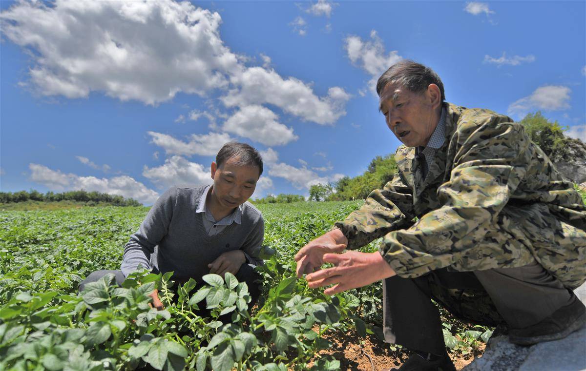 在马尔科土豆田,罗官章查看长势。