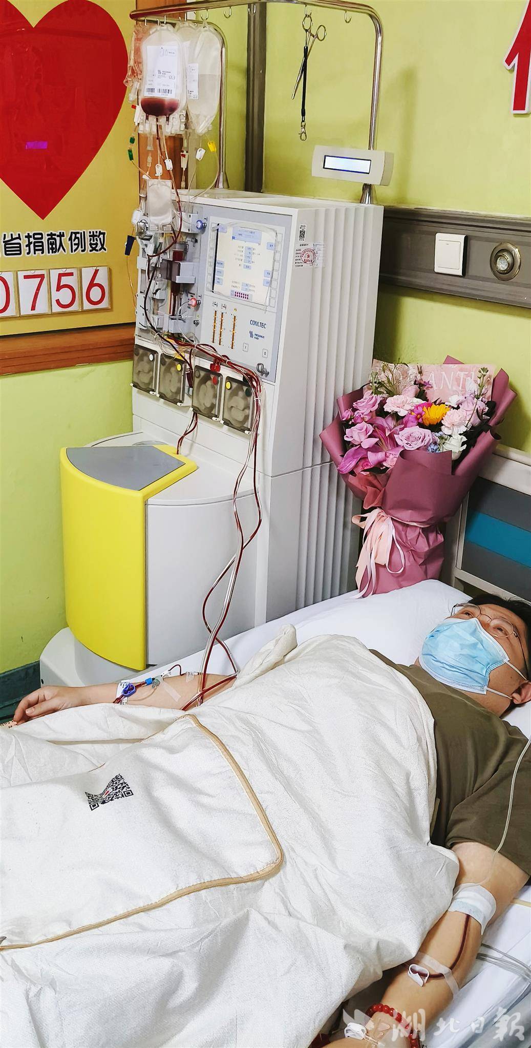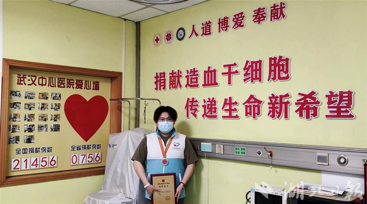湖北日报讯(记者曾莉、通讯员章晟)11月3日,一场跨越地域的生命接力在武汉某定点造血干细胞采集医院完成。30岁的龚星(化名)成功捐献271毫升造血干细胞悬浮液,为华东地区一位成年血液病患者送去生的希望,他也成为湖北省第756例、中华骨髓库第21456例非亲缘造血干细胞捐献者。