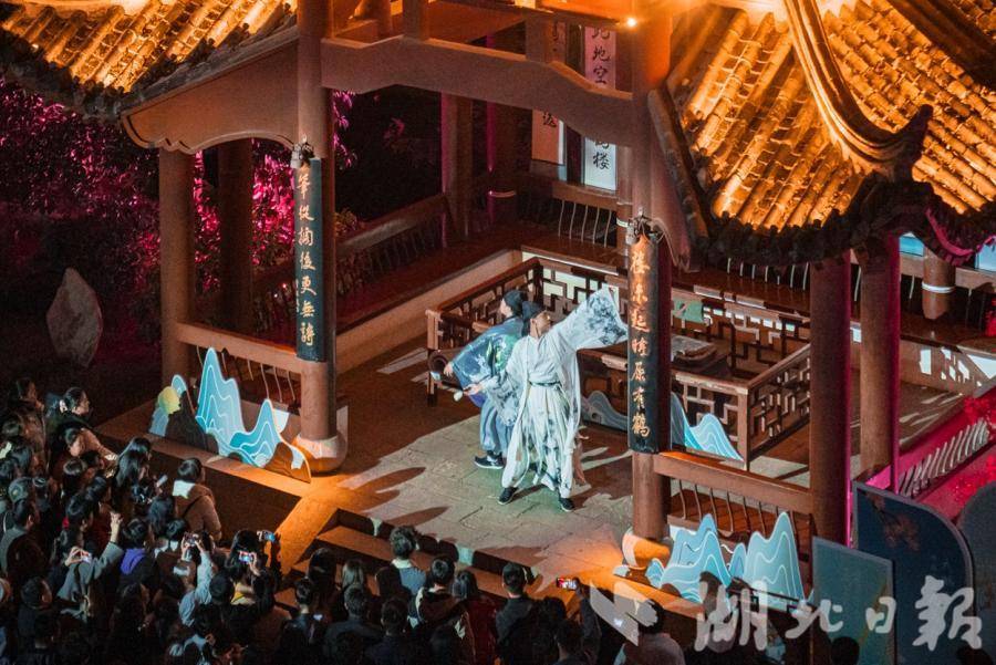 不同于传统夜游,《夜上黄鹤楼》用“光影+演艺”造了个穿越空间:辛氏沽酒、崔李题诗、岳飞点兵的场景就在眼前,你能穿汉服打卡,还能登楼360°看长江灯光秀。用另一种视角体验大江、大湖、大武汉的雄奇与隽美。