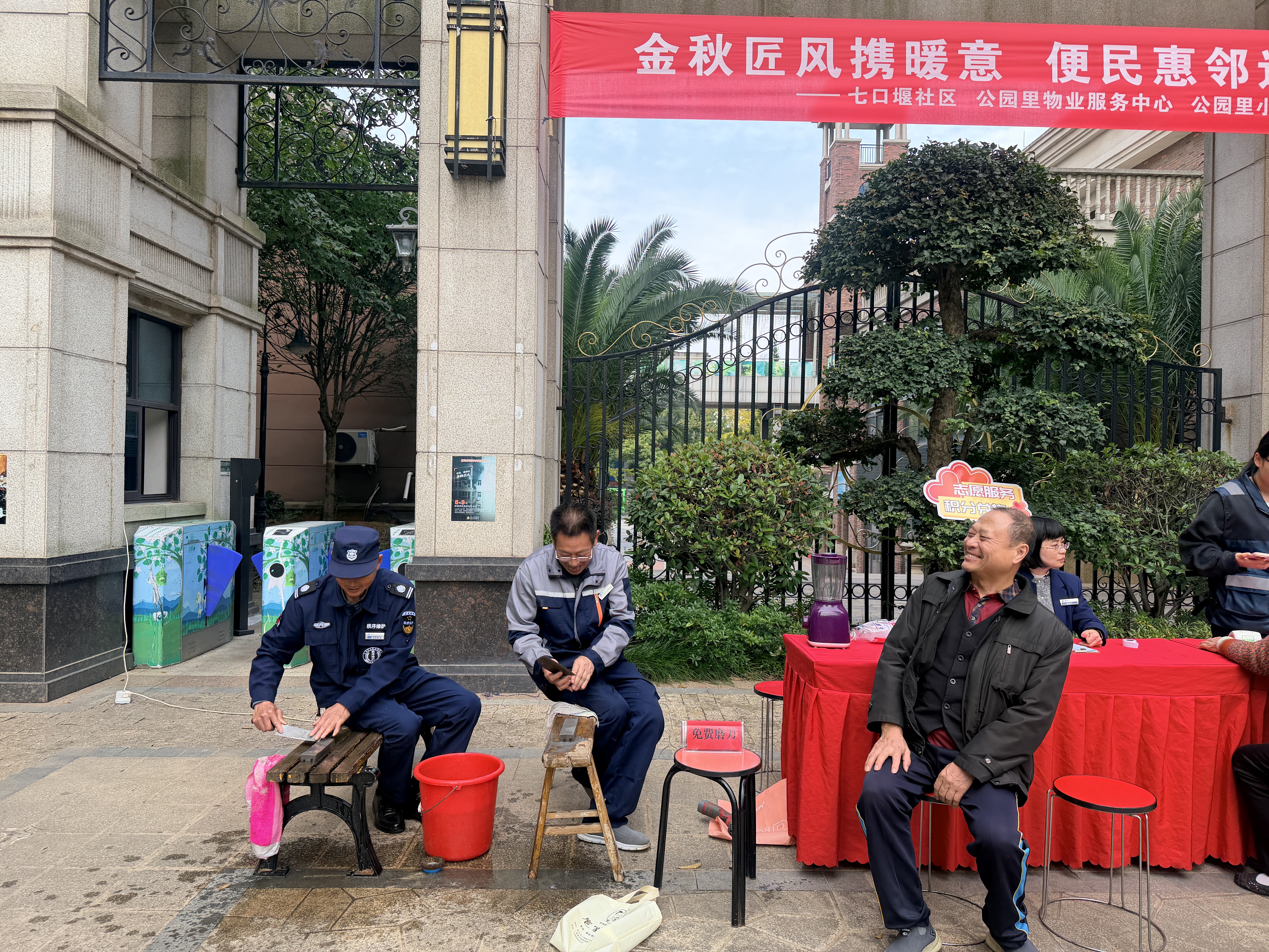 湖北日报客户端讯(通讯员 余璐)11月2日,由枝江市马家店街道七口堰社区、公园里小区物业服务中心与业委会共同举办的“浓浓物业情,情系业主心”活动暖心上线,免费为居民提供清洗地毯、磨刀、维修小家电及义诊等服务。