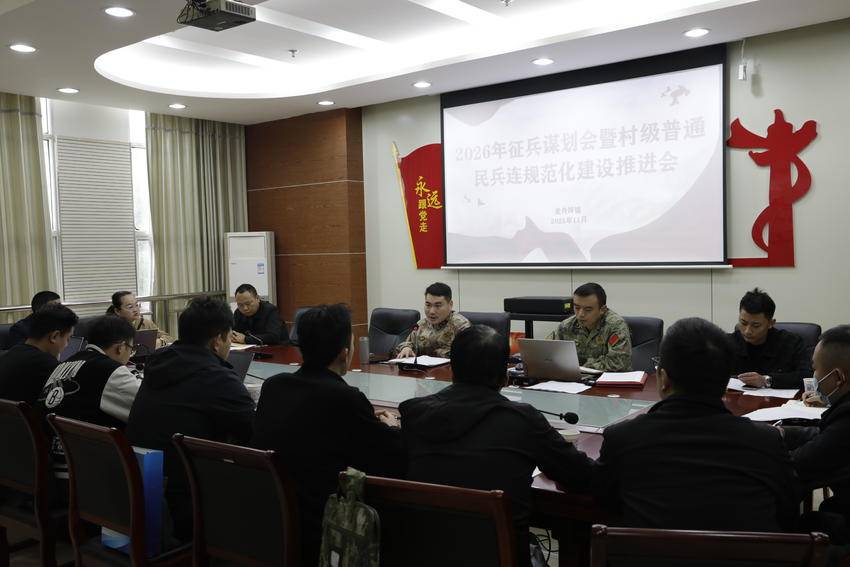 会议立足当前武装工作新形势、新要求,传达学习省军区相关培训会议精神及村级民兵连规范化建设文件,对2025年征兵工作进行了全面总结,对2026年征兵任务进行了周密部署。
