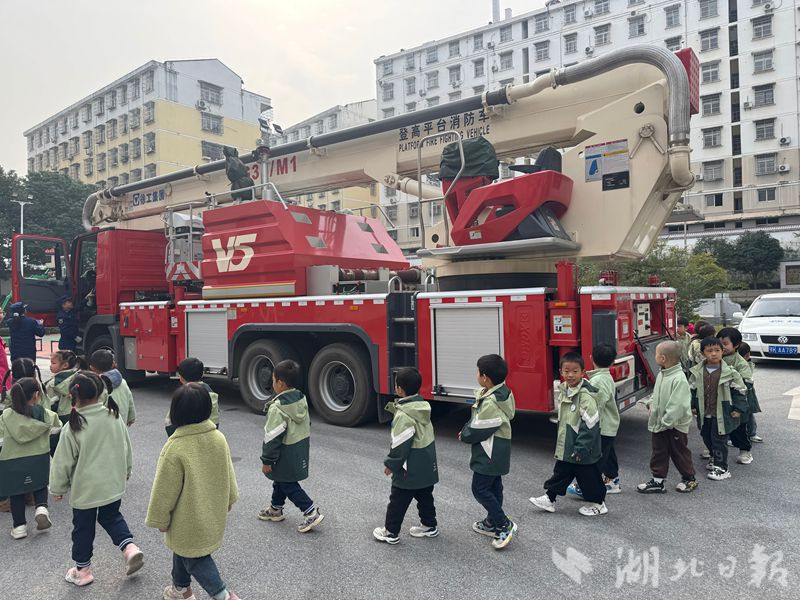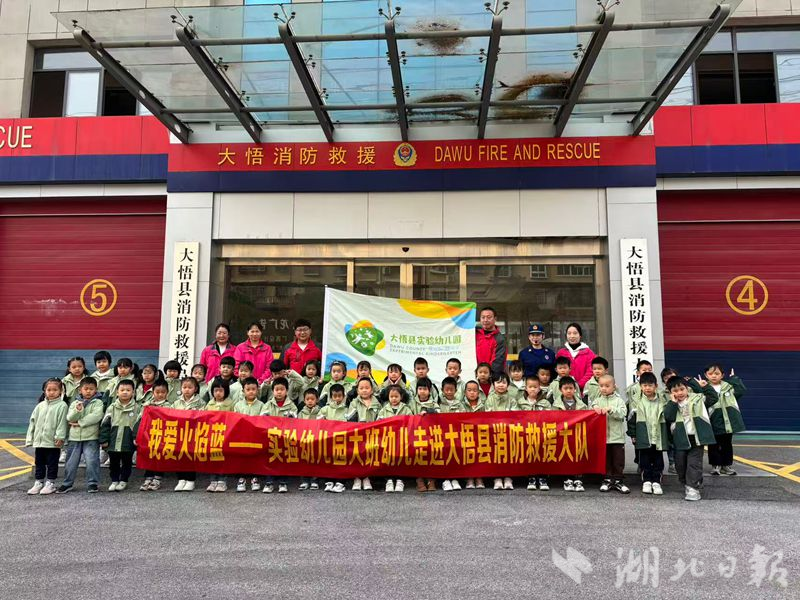 湖北日报客户端讯(通讯员何璋丽)“哇,消防车好高呀!”“叔叔,这个衣服重不重?”11月3日,孝感市消防救援支队大悟大队营区内格外热闹,来自实验幼儿园的小访客们带着满心好奇走进了神秘的“红门”世界。在“119”消防宣传月即将到来之际,这场别开生面的“红门开放日”活动,以沉浸式的互动体验,为40余名师生开启了一场生动而难忘的消防安全启蒙之旅。