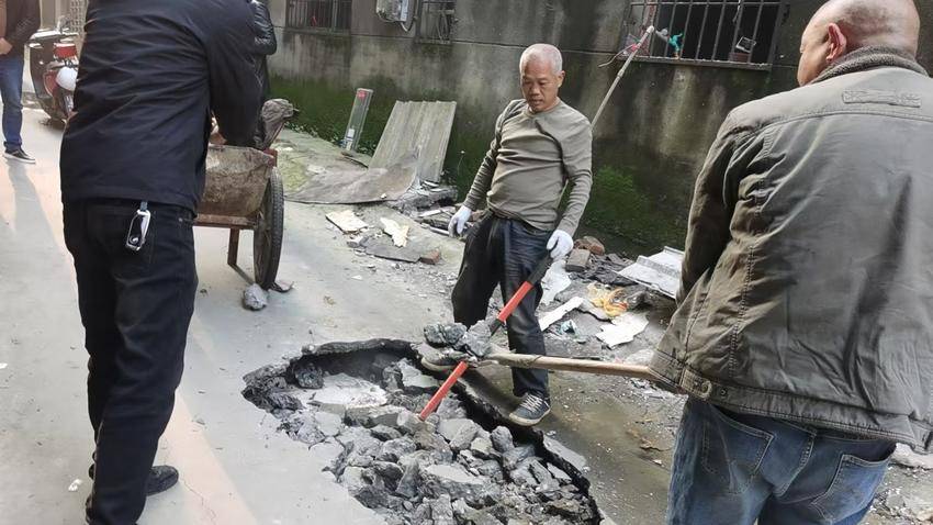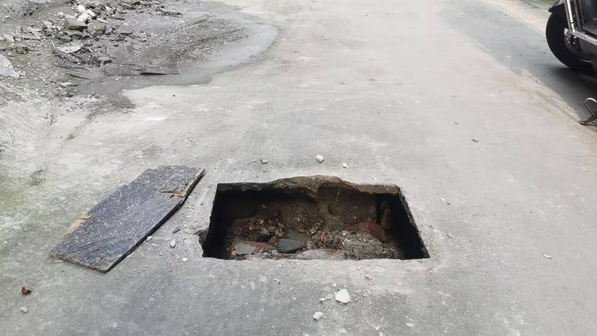 据了解,当日上午,社区工作人员在例行巡查中,敏锐地发现了该处路面的异常。经仔细勘察,确认路面下方出现空洞,并已形成直径约一米的坍塌区域,如不及时处置,塌陷范围可能进一步扩大。情况紧急,社区负责人当即在现场设立简易警示标志,疏导过往行人与车辆。