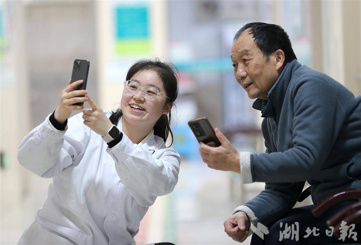 11月3日,荆门市东宝区龙泉社区卫生服务中心医护人员开展“智慧医疗助老”活动,手把手指导老年人群体操作在线查询健康报告等智能服务。