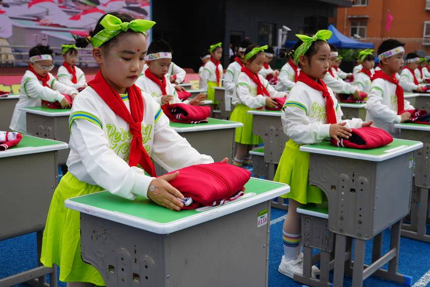 劳动技能展示环节同样精彩。一年级学生熟练演示撑伞和收伞;二年级学生则巧手叠衣,展现出良好的动手能力。