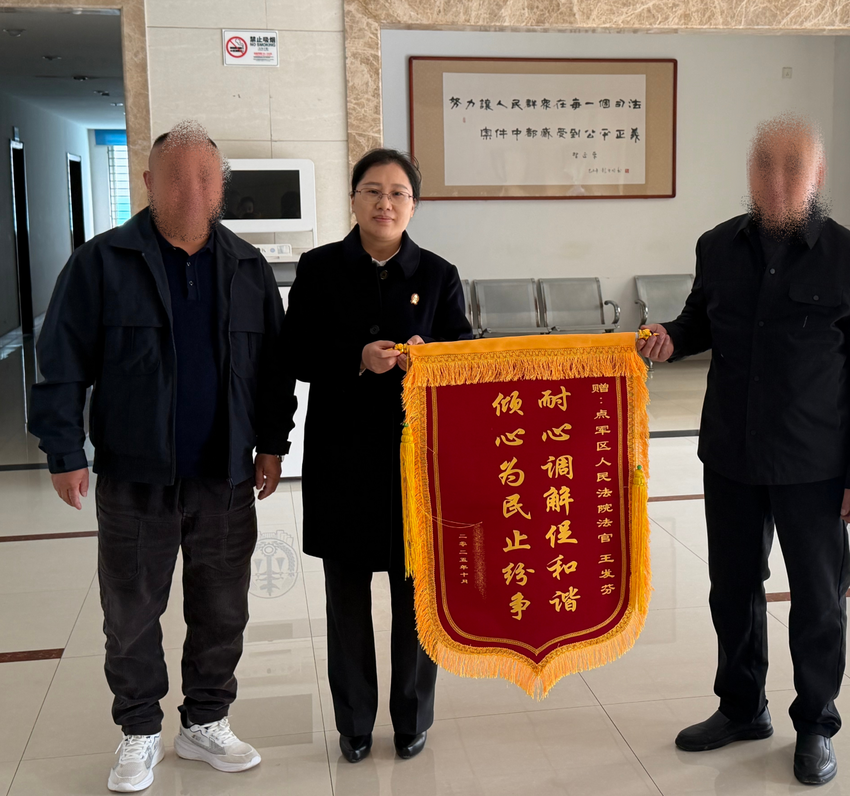 这面锦旗背后,是一起跨越五年、牵动两代人、涉及两栋宅基地的信访积案,在王发芬法官倾情调解下,这场家庭纠纷终于画上句号,一度破碎的亲情也在司法的温情中得以弥合。