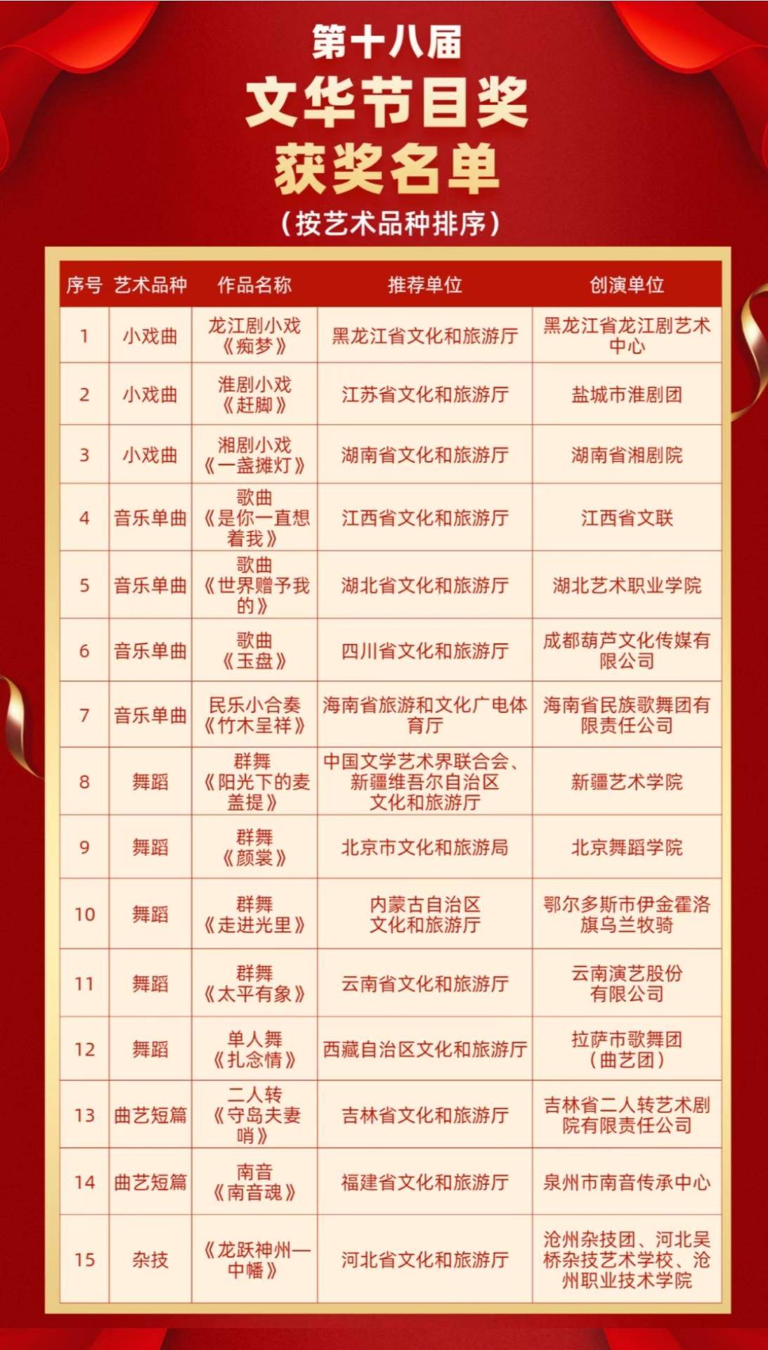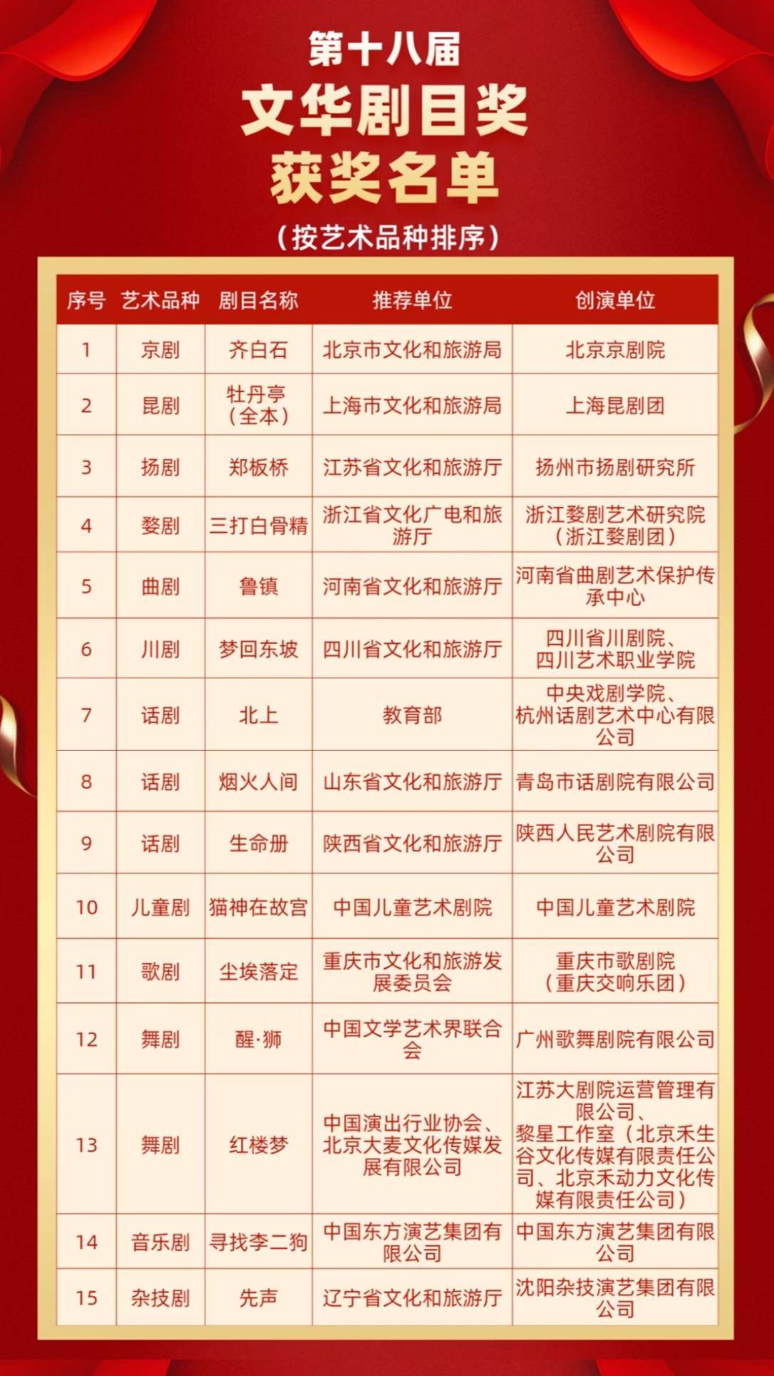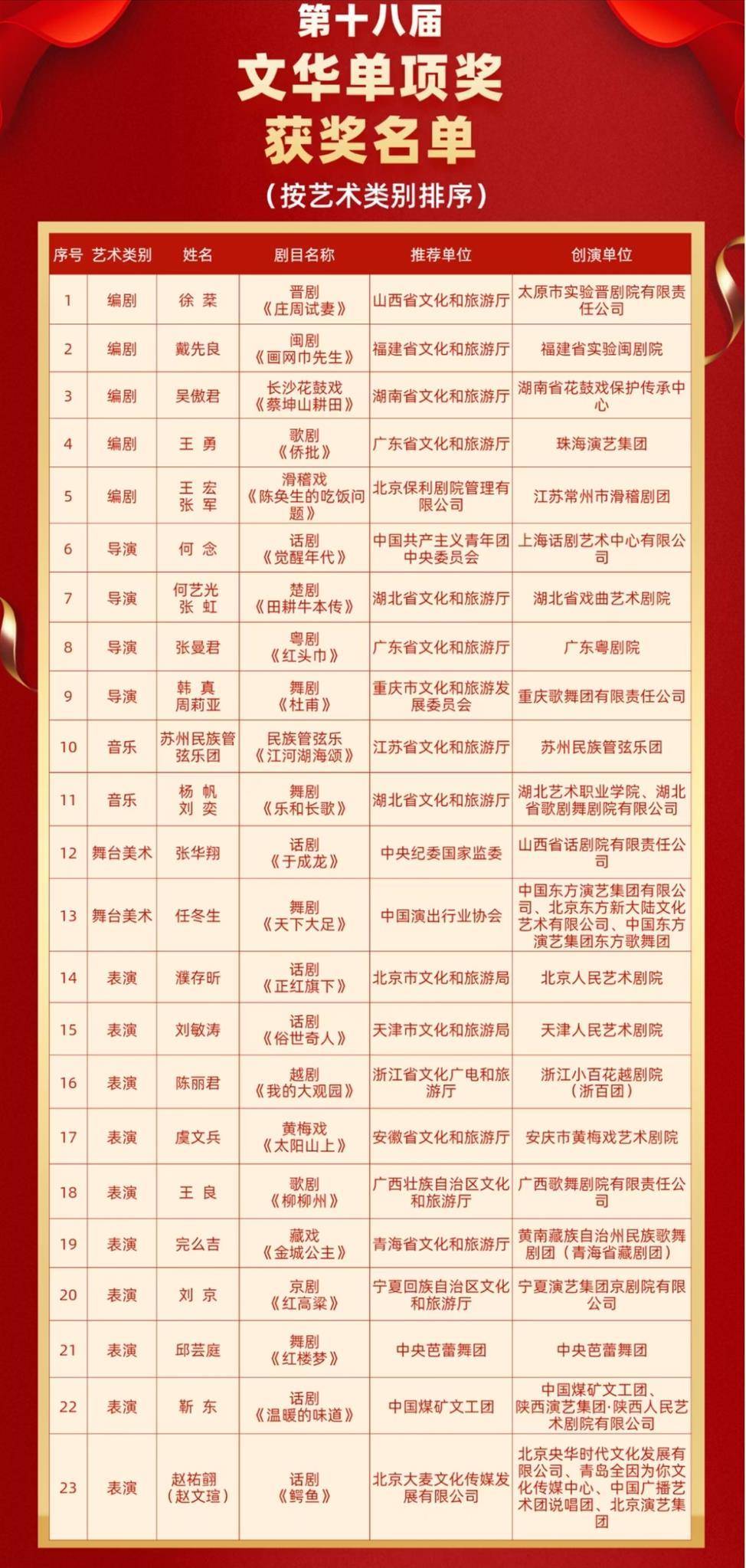 附:第十八届文华奖获奖全名单