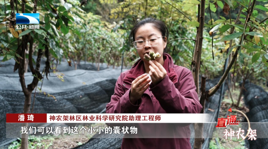 而在另一片山林之中,神农架林区松柏镇送郎山五倍子种植基地,林业科学研究院助理工程师潘琦正穿梭林间,小心翼翼地采摘着挂满枝头的五倍子果实。