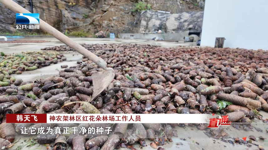 神农架红花朵林场工作人员 韩天飞:我们要经过十几天的晾晒之后,会变成这种果粒分离的种子,然后我们再经过6道工序的处理,让它成为真正干净的种子,我们进行播种。