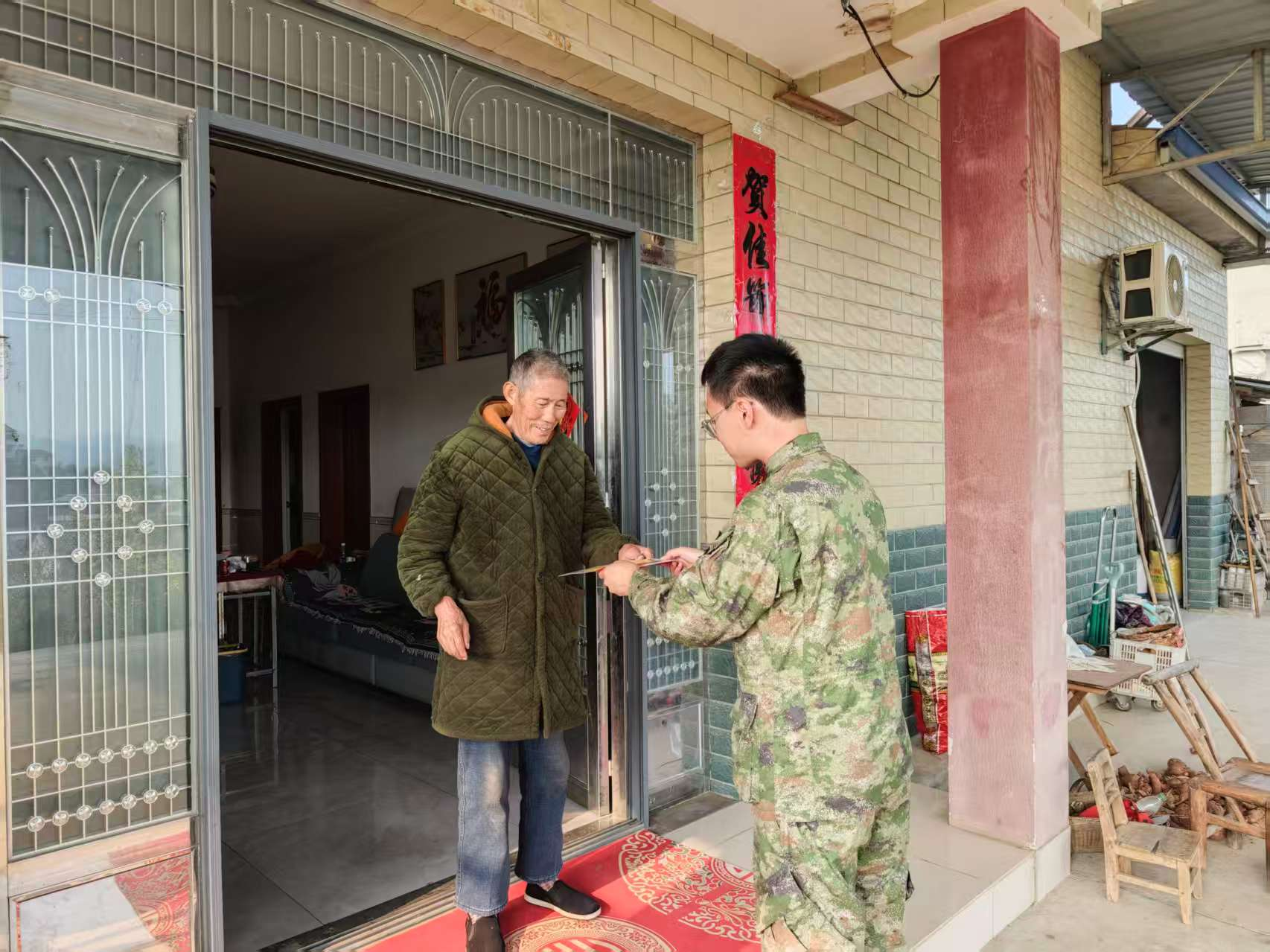 湖北日报客户端讯(通讯员杨帆)近日,黄花镇人武部积极开展“入户送荣”工作,将入伍通知书送到新兵家属手中,传递党和政府对军人军属的尊崇与关怀。将入伍通知书郑重交到家人手中那一刻,家属们脸上纷纷露出开心的笑容,为孩子能参军入伍感到无比光荣。