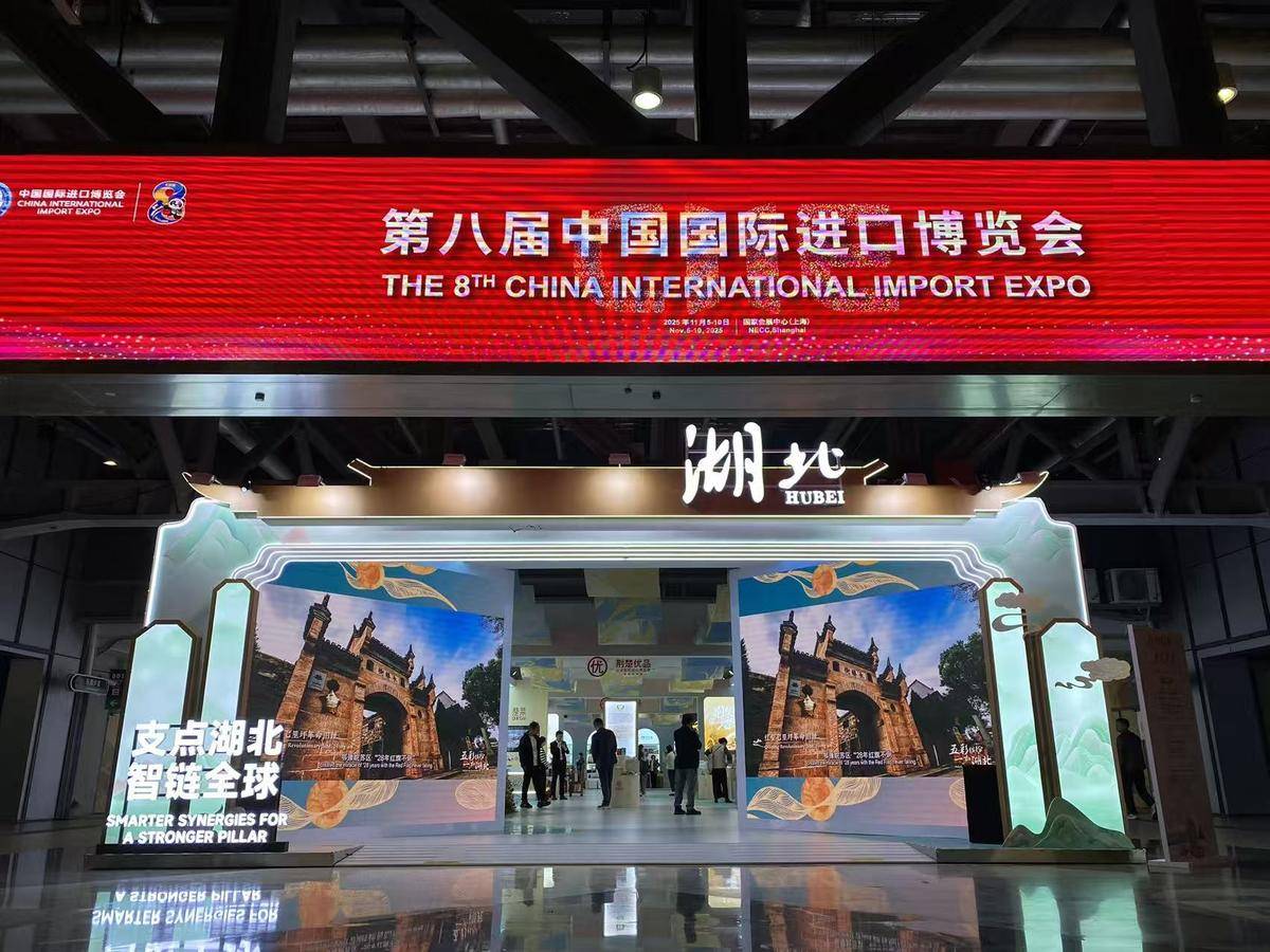 湖北作为进博会的“老朋友”,已连续八年奔赴“东方之约”,组织了1833余家湖北采购商,超5700人参加进博会,湖北观展人数创历史新高。在“四叶草”的“老地方”——会展步道(展馆夹层)7区与8区之间的通道,设置了两个405平方米的湖北展区。