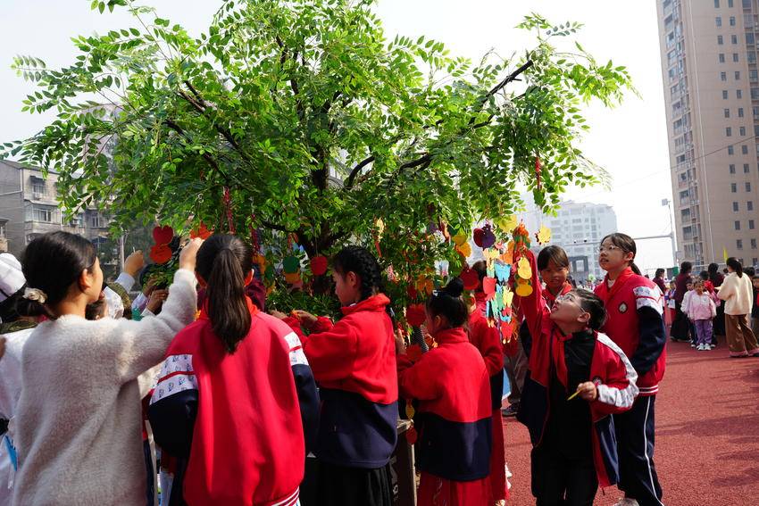 互动环节气氛热烈,猜古诗、猜诗人、猜名著人物等趣味游戏接连上演,同学们踊跃抢答。同学们在“中华槐”树上挂满了阅读收获卡,成为校园里一道亮丽的风景线。