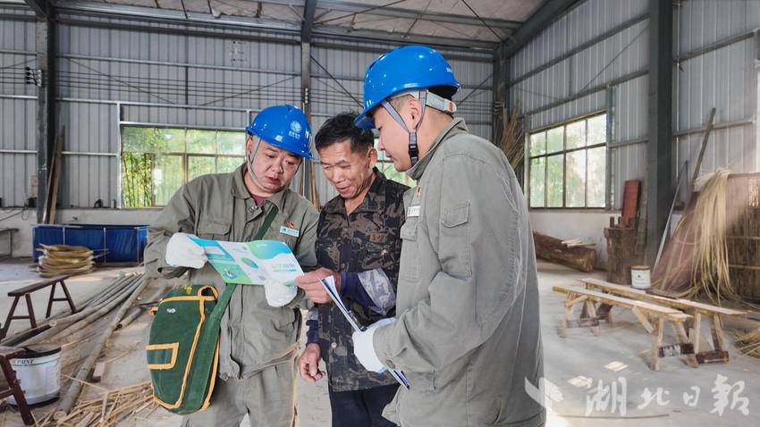 湖北日报客户端讯(通讯员沈庭萱 丁小波)11月4日,国网崇阳县供电公司桂花泉供电所的“电力服务小分队”走进湖北节节升竹叶有限公司,为企业开展全方位用电“问诊”,从线路巡检到需求对接,用细致服务为竹产业发展注入“满格电力”。