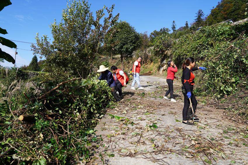 活动现场,干群分工协作,用镰刀、锄头、扫帚等工具开展杂木砍除、杂草清理和路面整理工作。经过三个多小时的共同努力,原本被草木侵占的1.5公里道路通行条件得到显著改善。