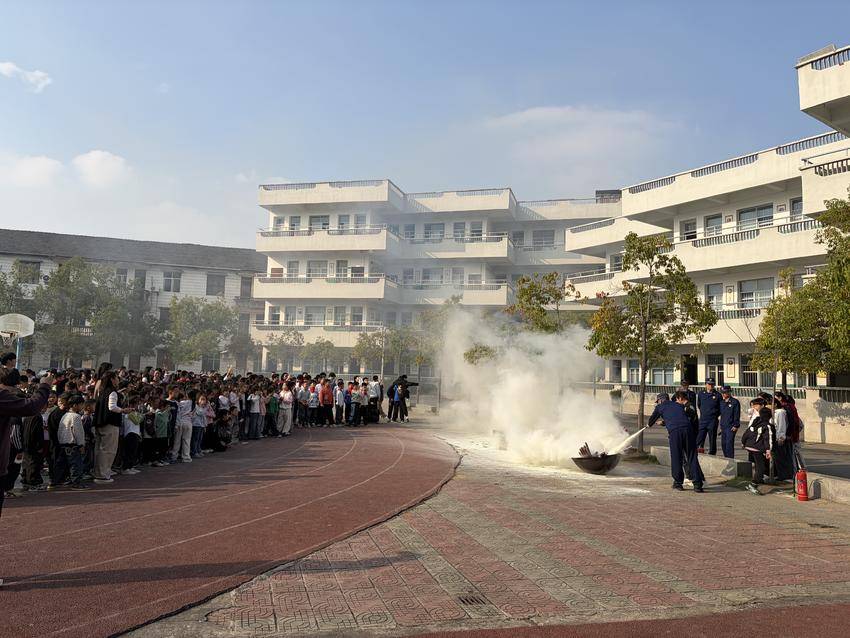 演练结束后,消防员为师生现场讲解了灭火器使用方法和防火常识,并展示了液压剪、空气呼吸器等专业救援装备。此次活动通过沉浸式体验,有效提升了师生消防安全意识和自救互救能力,为构建平安校园提供了有力保障。