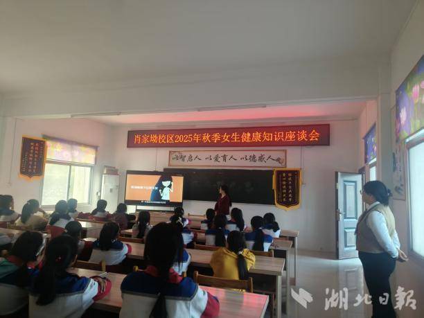 近日,罗田县城南新区小学白庙河校区肖家坳小学举办六年级全体女生健康知识座谈会。座谈会由六年级班主任周老师、女生辅导员刘老师及教务主任陈老师共同主讲,助力女生从容应对青春期。
