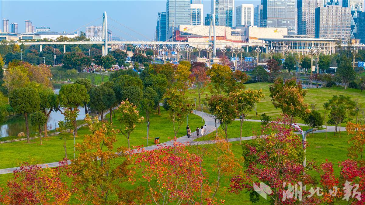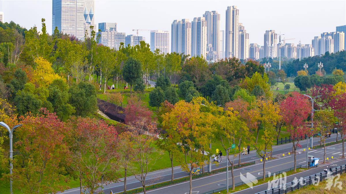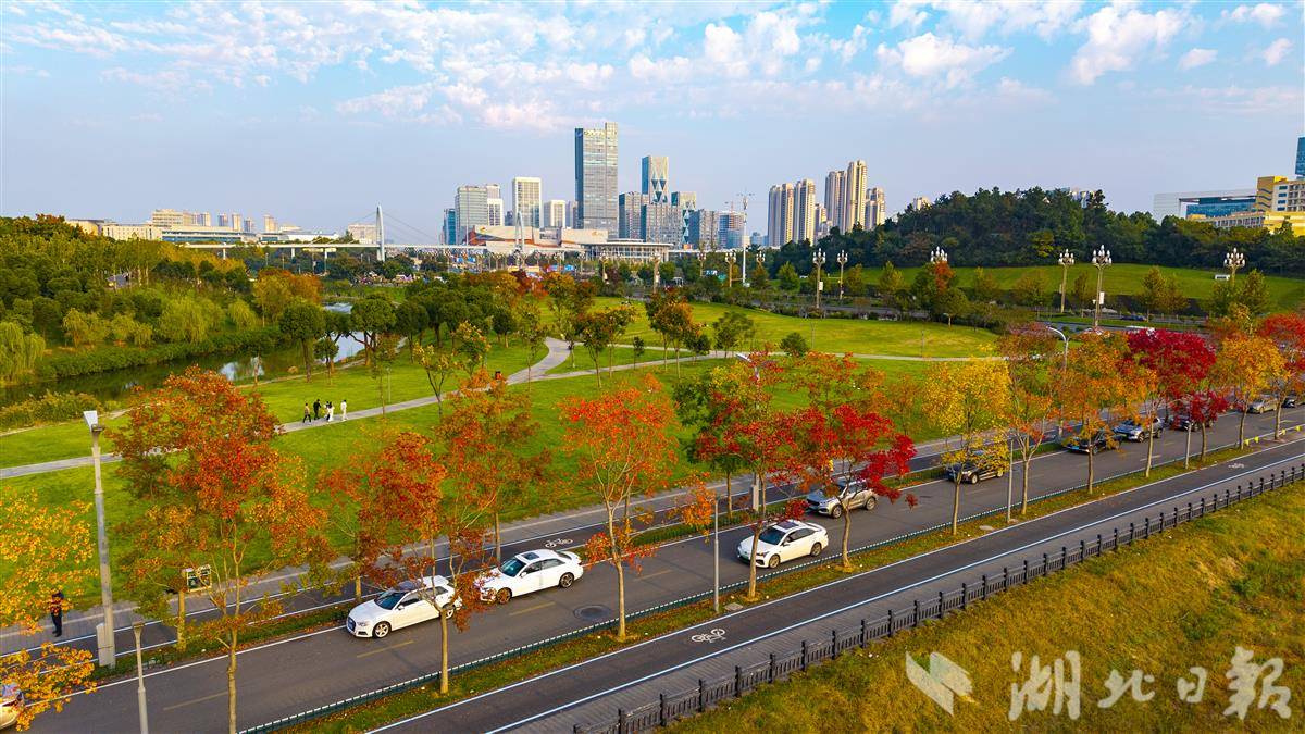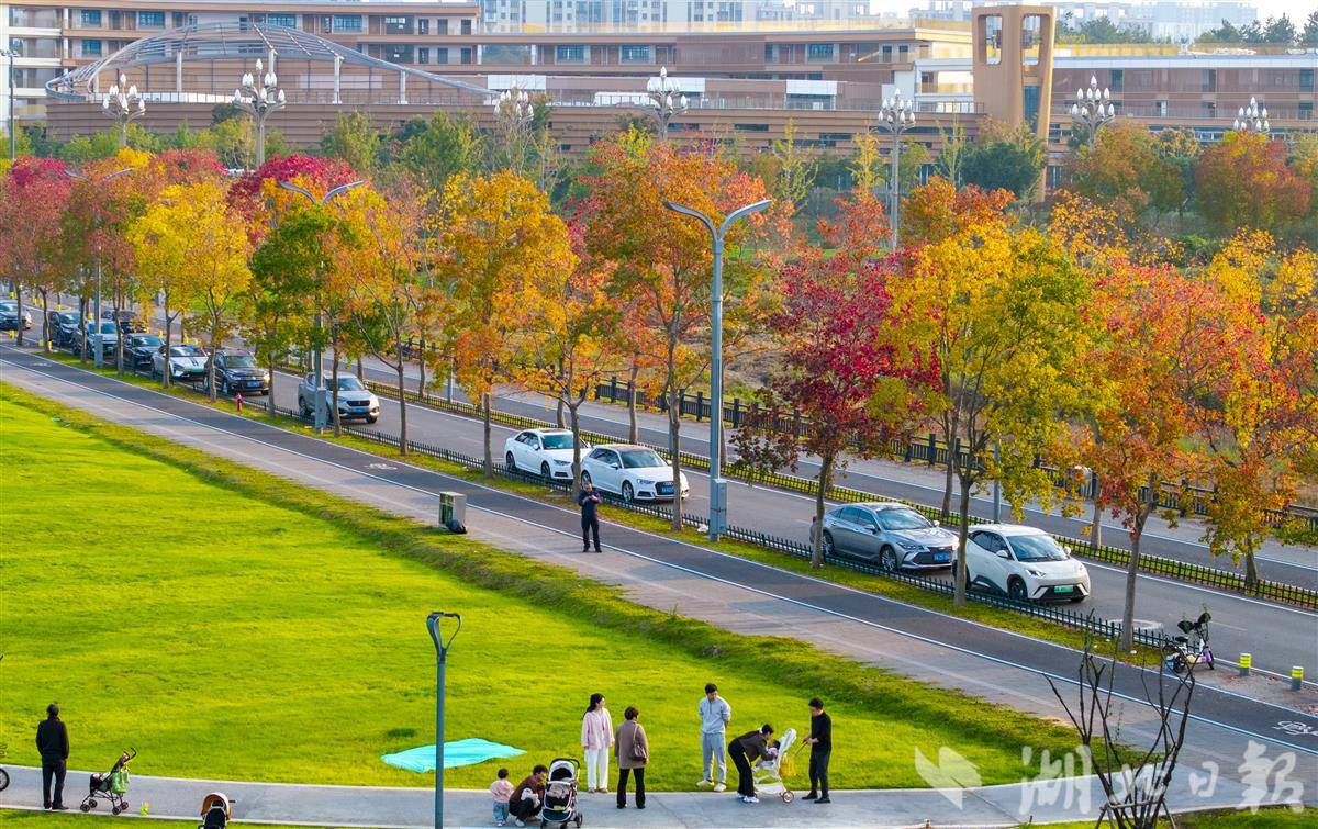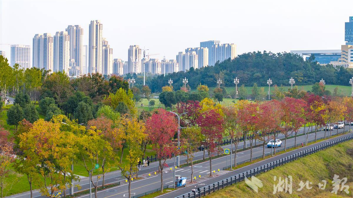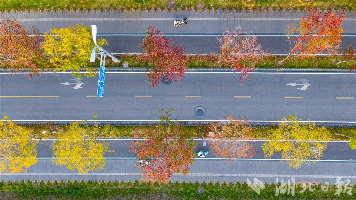 11月5日,光谷孟新路道路两侧的乌桕树色彩斑斓,秋意浓艳。
