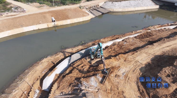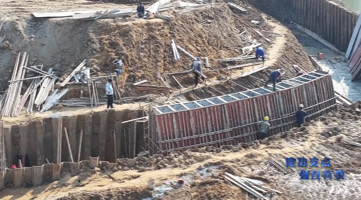 11月5日,位于高新区恒大板块的1号渠排水防涝工程正稳步推进。施工现场,重型打桩机将一道道钢板桩精准就位,夯实着工程基础;与此同时,工人们正在已成型的混凝土挡墙上进行精细的模板支护作业,标志着项目主体结构施工进入关键阶段。