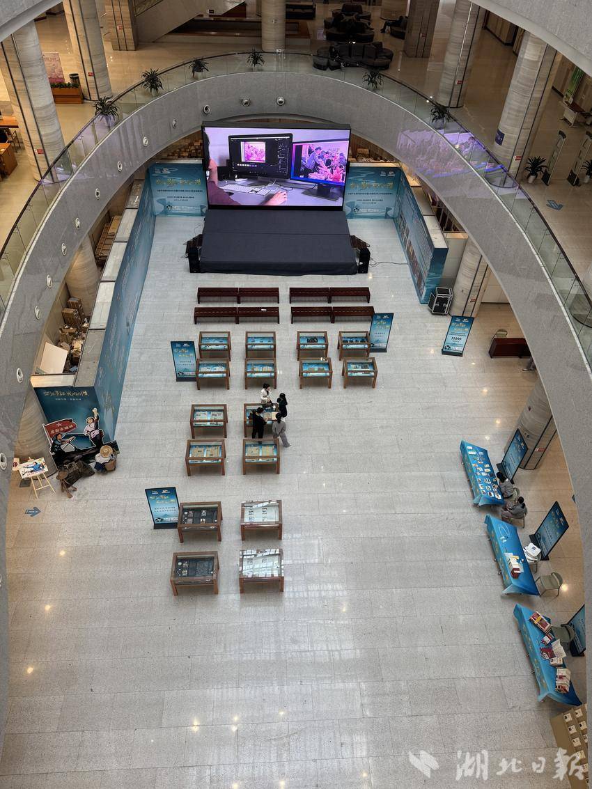 湖北省图书馆大厅内,主题陈列展布展完成。