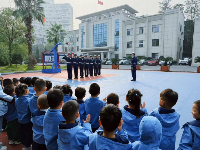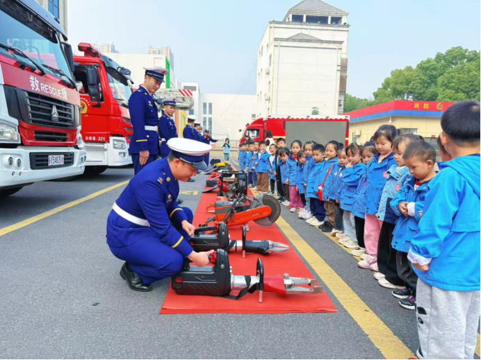 在互动体验环节,消防员们先用通俗易懂的语言讲述了消防器材的用途和使用方法,孩子们亲手触摸了隔热服、头盔、消防靴等消防装备,还穿上消防服,变身“小小消防员”。“衣服好重呀,消防员叔叔平时好辛苦!”亲身体验后,孩子们更是过足了“消防瘾”。