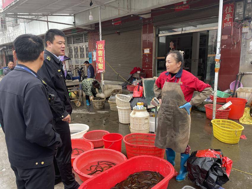 执法人员通过严格核查经营者是否落实进货查验义务、是否规范持有并公示“两证”,督促经营者严把进货关,确保黄鳝来源可溯、质量达标。