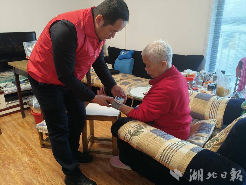 手部护理结束后,志愿者又取出血压测量仪,为老人测量血压。“您先坐好,放松心情,我给您测下血压。”志愿者一边调试仪器,一边和老人聊天缓解紧张情绪。测量结束后,志愿者详细记录血压数据,根据数值给出合理的健康建议,并反复提醒老人注意冬季保暖与居家防火安全。