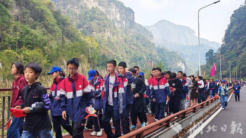 在柴埠溪大峡谷谷底,全体师生更是共同完成了一场考验意志的徒步之旅。途中,有人脚磨水泡仍坚持前行,有队伍高唱班歌相互激励,休息时分享食物、水源,展现紧密的团队精神。