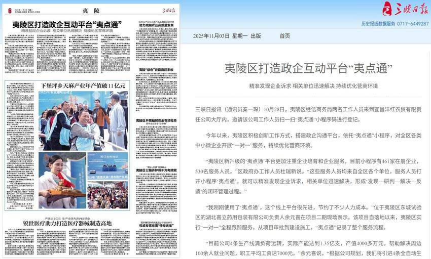 今年以来,夷陵区积极创新工作方式,搭建政企沟通平台,依托“夷点通”小程序,对全区各类中小微企业开展“一对一”服务,持续优化营商环境。