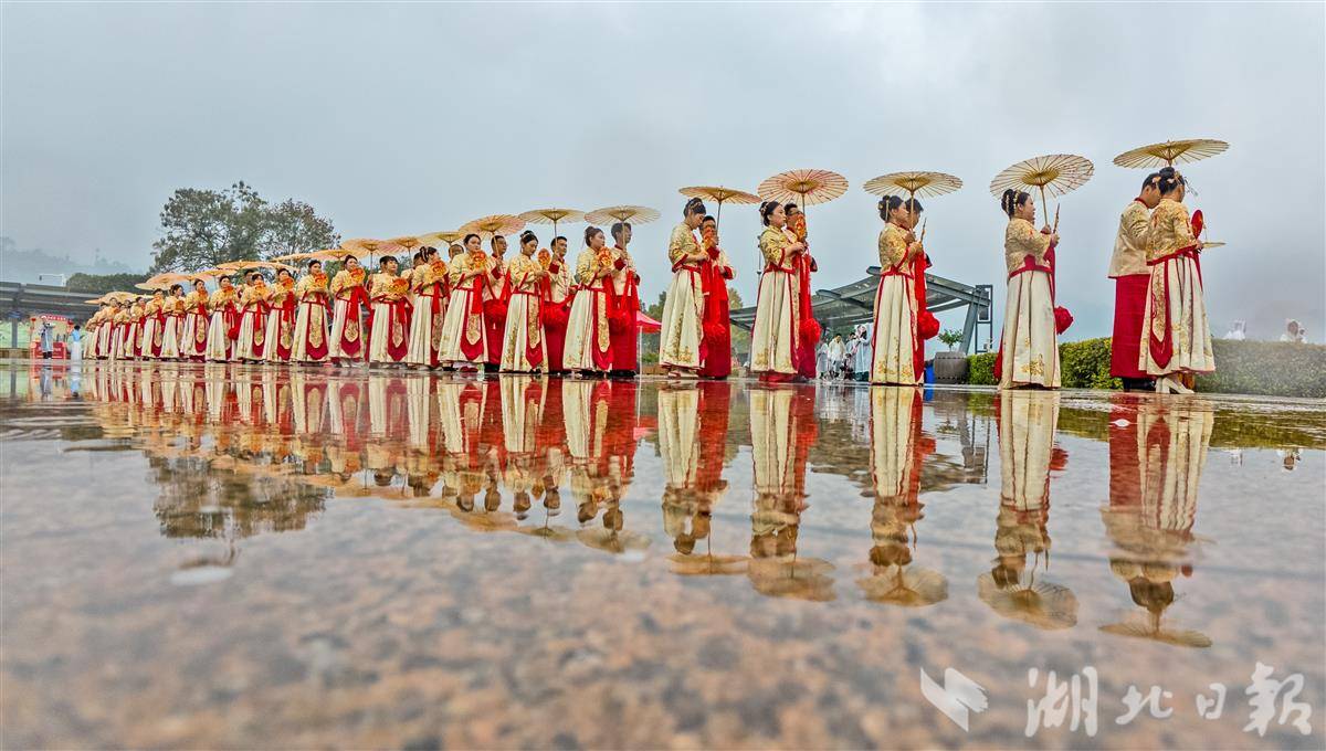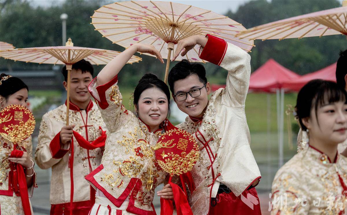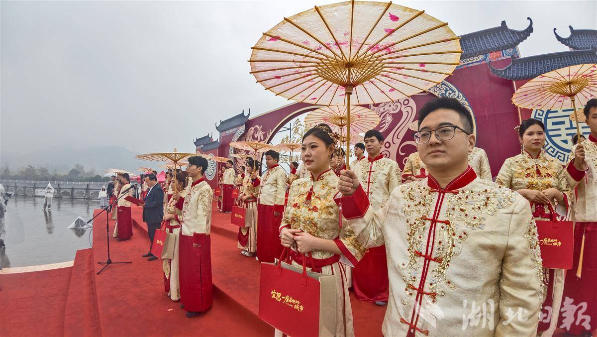 新人代表领诵《新人倡议书》,誓言 “以德治家、以俭持家、以奋斗筑家”,承诺传承家国情怀、倡导婚事新办。礼成后,新人参观三峡大坝工程博物馆,汲取奋进力量。据悉,该集体婚礼已连续举办四届,吸引200余对青年结缘。本届新增主题打卡区、非遗互动区及宜昌特色美食区,新人涵盖巾帼标兵、医护人员、消防战士等优秀青年代表,尽显新时代青年风貌。(湖北日报全媒记者 刘曙松 摄)